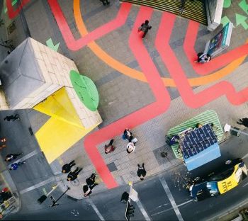 منظر شهری و فرهنگی خلاقانه گروه 100architects معماران گروه 100architects منظر شهری و فرهنگی خلاقانه را در شهر سانتیاگو با نام huellas artes طراحی کردند و تفسیر رد پای انسان به عنوان یک دنباله هنری می باشد.