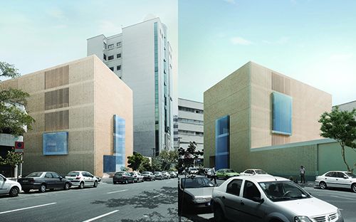 طراحی حجم و نما برای برج خدماتی پزشکان واقع در میدان افلاک نمای تبریز در 23 طبقه و مساحت 16 هزار مترمربع.